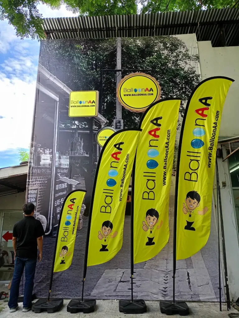 เคลื่อนไหวตามลม ทำให้สะดุดตา ใช้พื้นที่น้อย แต่สื่อสารได้ชัด เหมาะกับร้านอาหาร คาเฟ่ ร้านเครื่องดื่ม งานอีเว้นท์ งานกีฬาต่าง ๆ และจุดสำคัญที่สุดคือ “การพิมพ์” ซึ่งมีทั้งแบบ ด้านเดียว และ สองด้าน ที่ให้ผลลัพธ์ต่างกันอย่างมาก